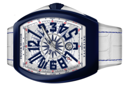 FRANCK MULLER VANGUARD TITANIUM BLUE YACHTING WHITE LEATHER V 45 SC DT YACHT MTBL BC