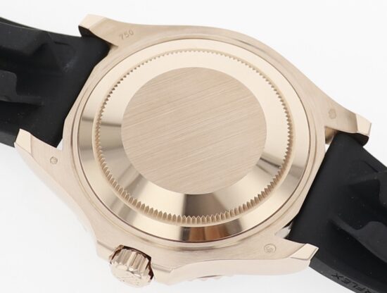 Bracelet/Strap: Rubber with 18K Pink Gold fold clasp