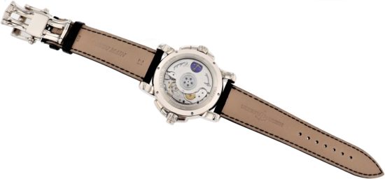 Band: black leather, excellent with 18K white gold deployment buckle